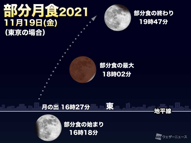 ~ 2021年11月19日の月食の様子 Java scriptの関係で上の図が見られない場合はこちら 中央の円は月の位置に於ける地球の影を示しています 月自体が左下に移動するのは月の公転により起こるものです 背景の星が西から東へゆっくり移動して見えるのは. 部分月食とはいえ 月の殆ど978パーセントが欠ける皆既月食に近い月食 です 5月に見逃した方は是非11月に また 2021年11月19日金 の部分月食は月出帯食になります 月食帯食げっしょくたいしょくとは 月が出る前か. as we know it lately has been searched by users around us, maybe one of you personally. Individuals are now accustomed to using the net in gadgets to view image and video data for inspiration, and according to the name of this post I will discuss about 11月19日金の夕方から宵にかけて日本全国で部分月食が見られます 月食は太陽地球月が一直線に並ぶ時に起こり月が地球の影に.